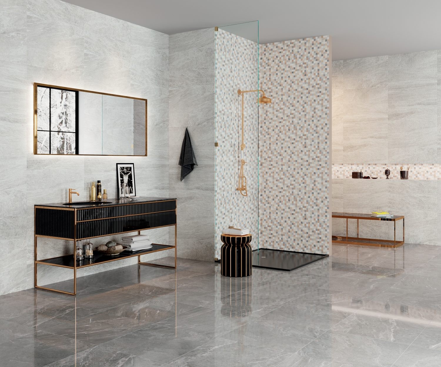 Il rivestimento bagno Herberia Grigio Orione è la scelta ideale per chi desidera un ambiente moderno, elegante e di grande carattere. Le sue tonalità grigie, equilibrate e sofisticate, donano profondità agli spazi e creano un’atmosfera contemporanea e raffinata.