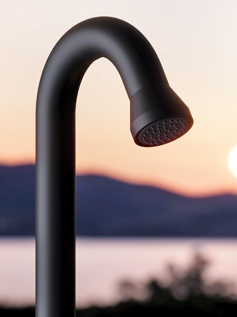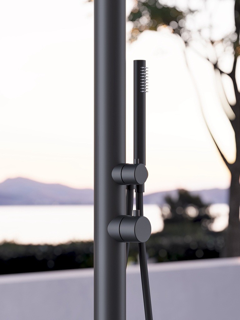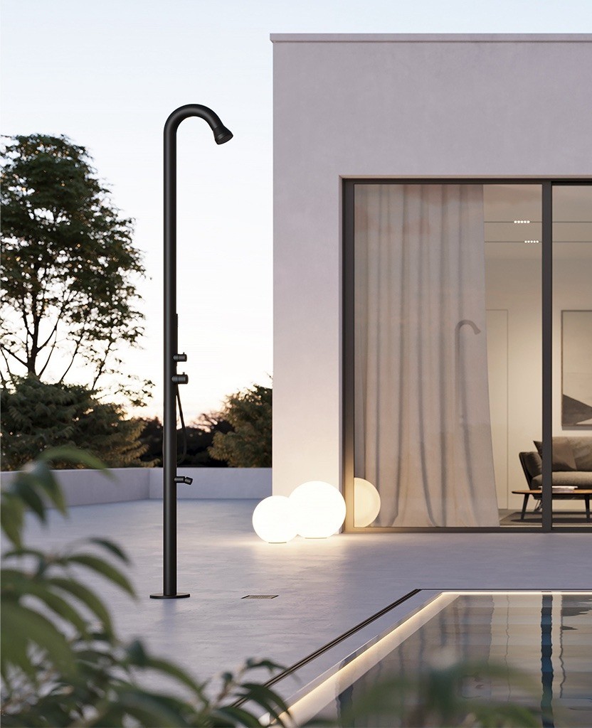 Una doccia da esterno originale e minimalista. Neriva nasce per le spiagge, per il bordo piscina, per ogni luogo in cui è necessario creare un angolo doccia dal design elegante e discreto.