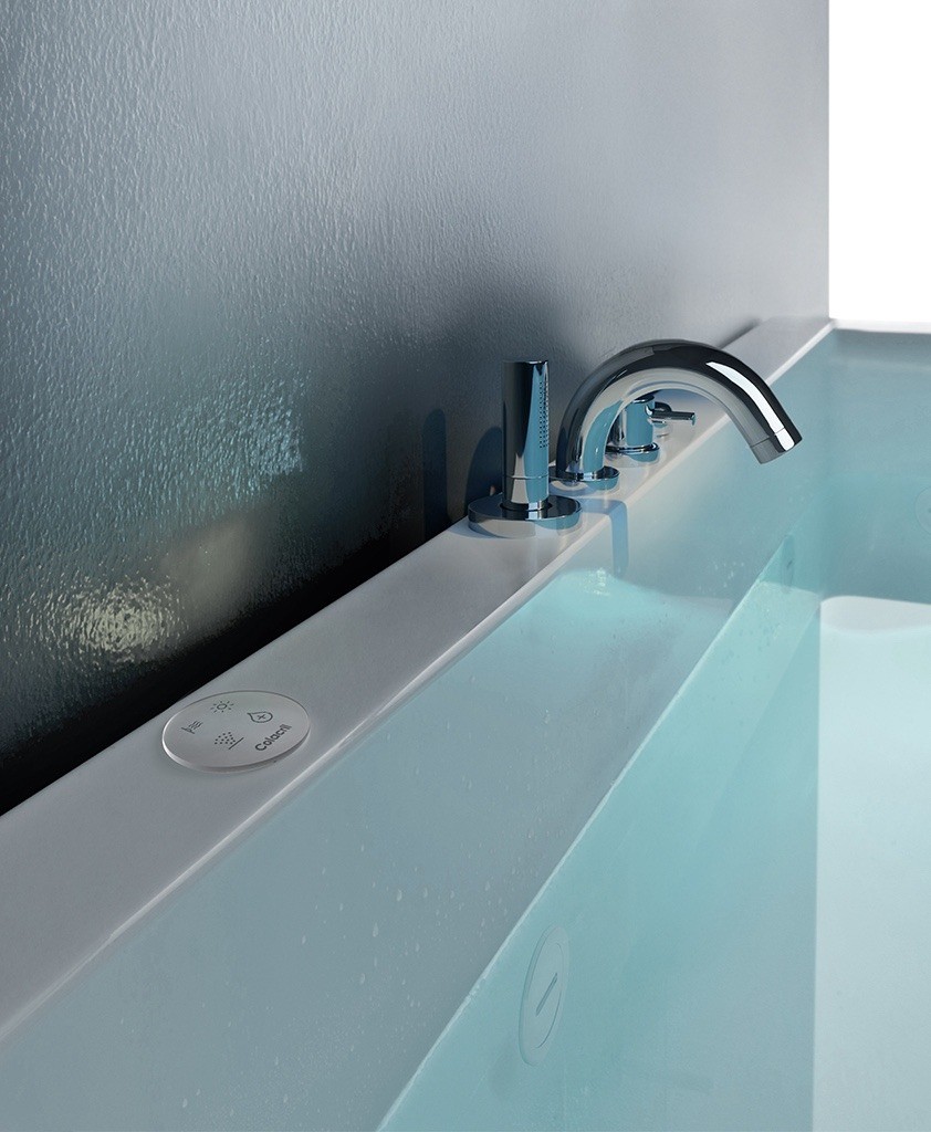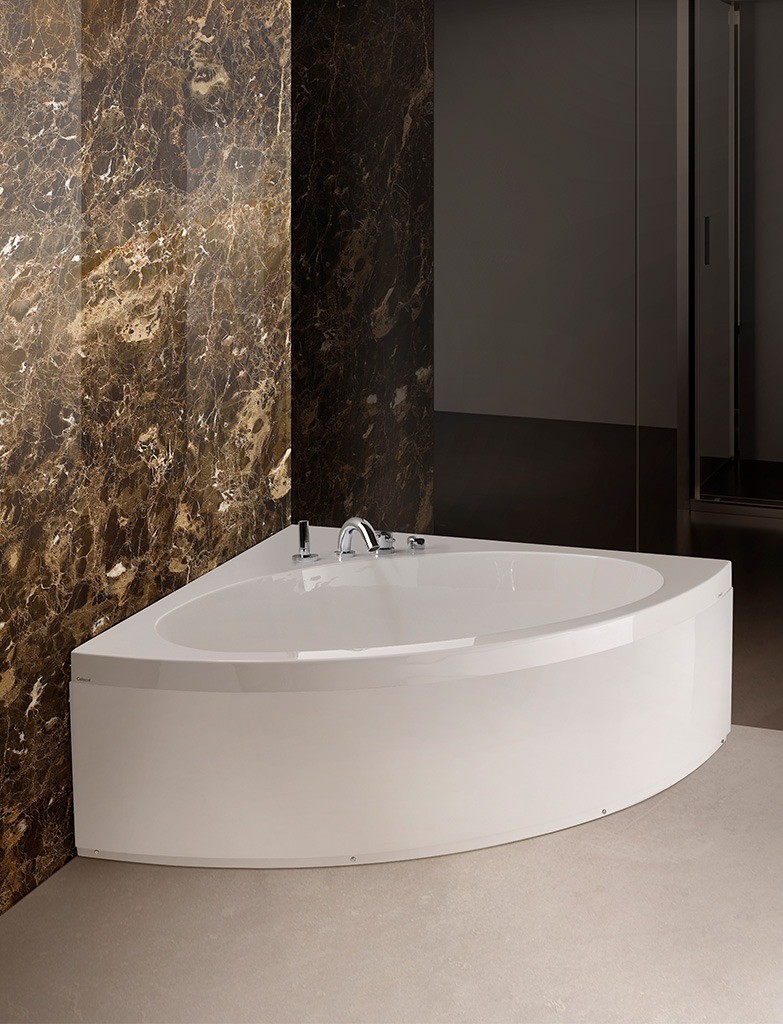 Una linea pulita e decisa disegna l’ampio e avvolgente bacino della vasca in versione angolare, adatta a qualsiasi tipo di bagno o stile di arredo. Disponibile con e senza idromassaggio, può essere installata fuori terra pannellata e ad incasso, con la possibilità di scegliere la colonna dis carico con erogatore.
