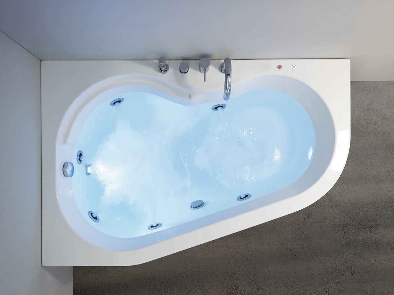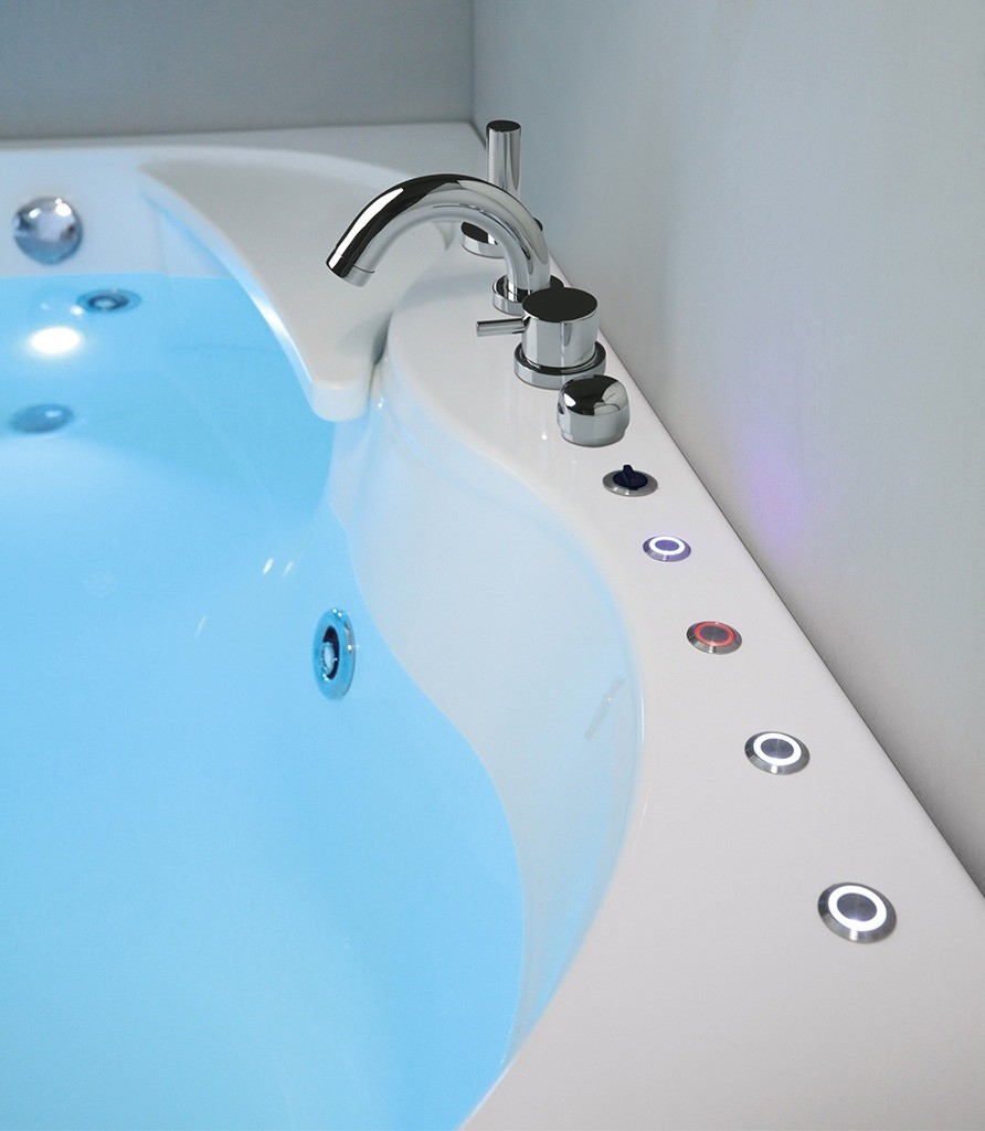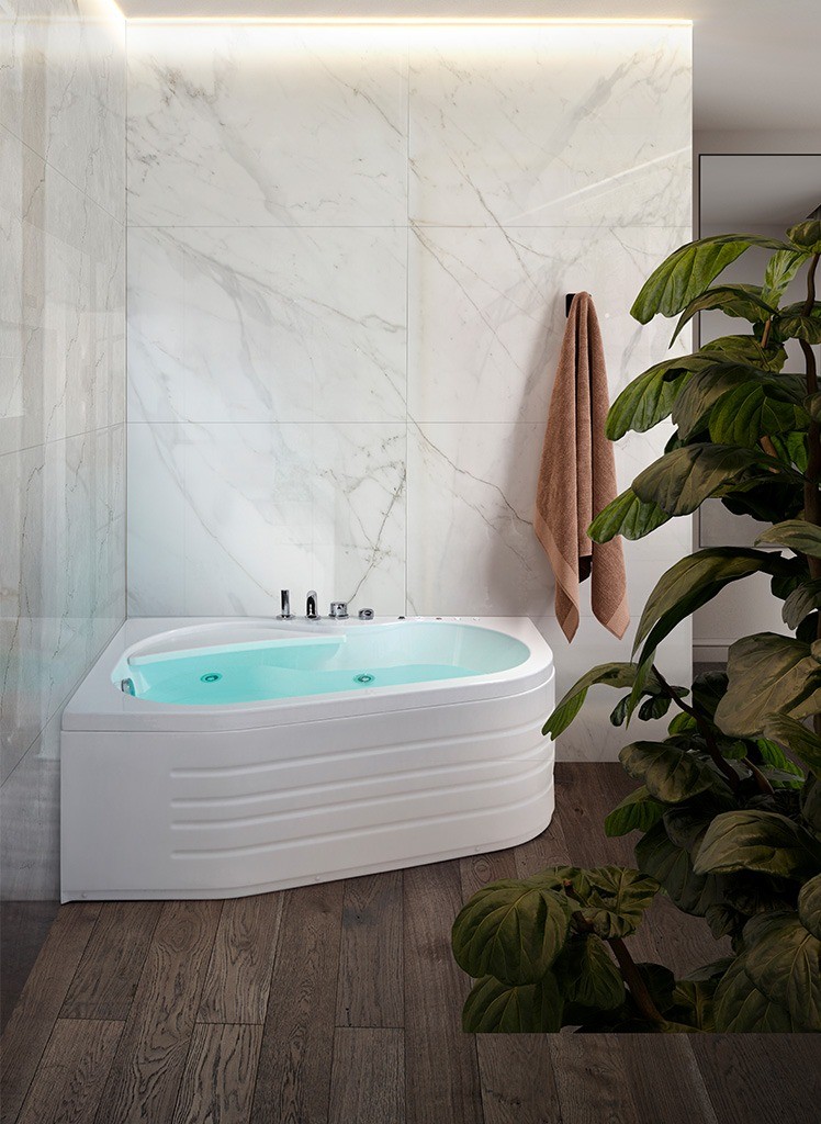 Con la sua linea morbida è comoda funzionale e personalizzabile. Posizionata all’angolo ottimizza lo spazio con le sue dimensioni e arreda con eleganza in tutte le varianti colore, offrendo tutti i comfort e le caratteristiche di benessere delle vasche idromassaggio Colacril. Per un uso quotidiano è abbinabile al box doccia di vetro curvato, che seguendo le linee della vasca arricchisce in modo elegante il design minimale e lo spazio bagno. Disponibile nella versione basic o idromassaggio e cromoterapia può essere accessoriata con il gruppo rubinetto tradizionale a 4 fori o a tre fori con colonna di scarico con erogatore.