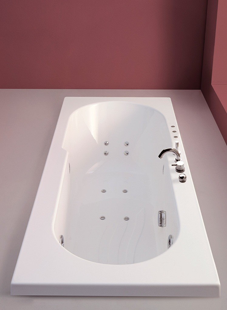 Una dimensione ampia e accogliente. Rettangolare e con bacino disegnato per una duplice funzione di vasca e doccia, con la possibilità di una chiusura sopravasca. La fascia esterna messa in evidenza dallo zoccolo arretrato e il guscio possono essere personalizzati nella versione pannellata. Ad incasso con il guscio colorato rende originale ed esclusivo l’abbinamento diretto o a contrasto con il rivestimento del pavimento.