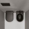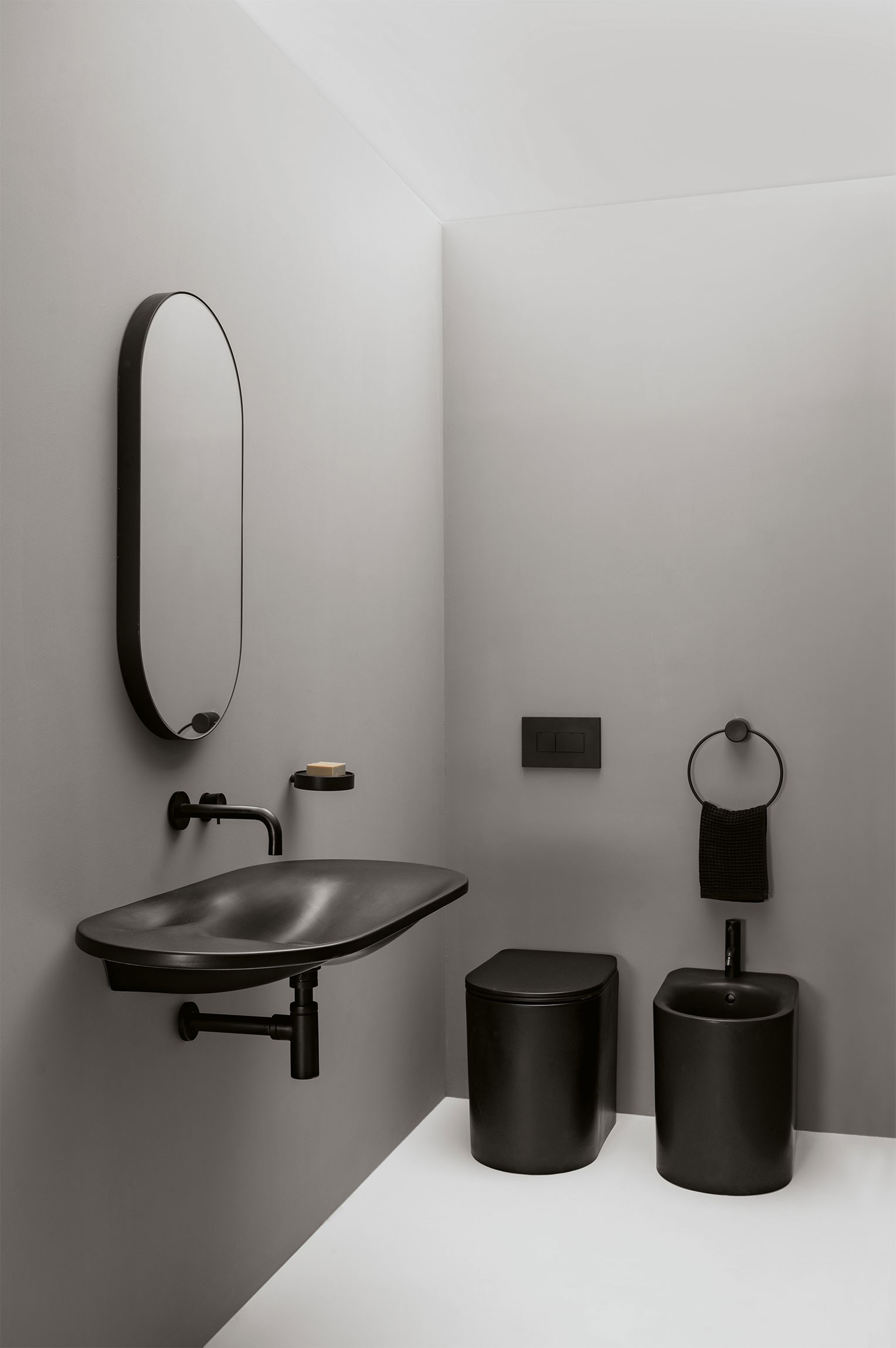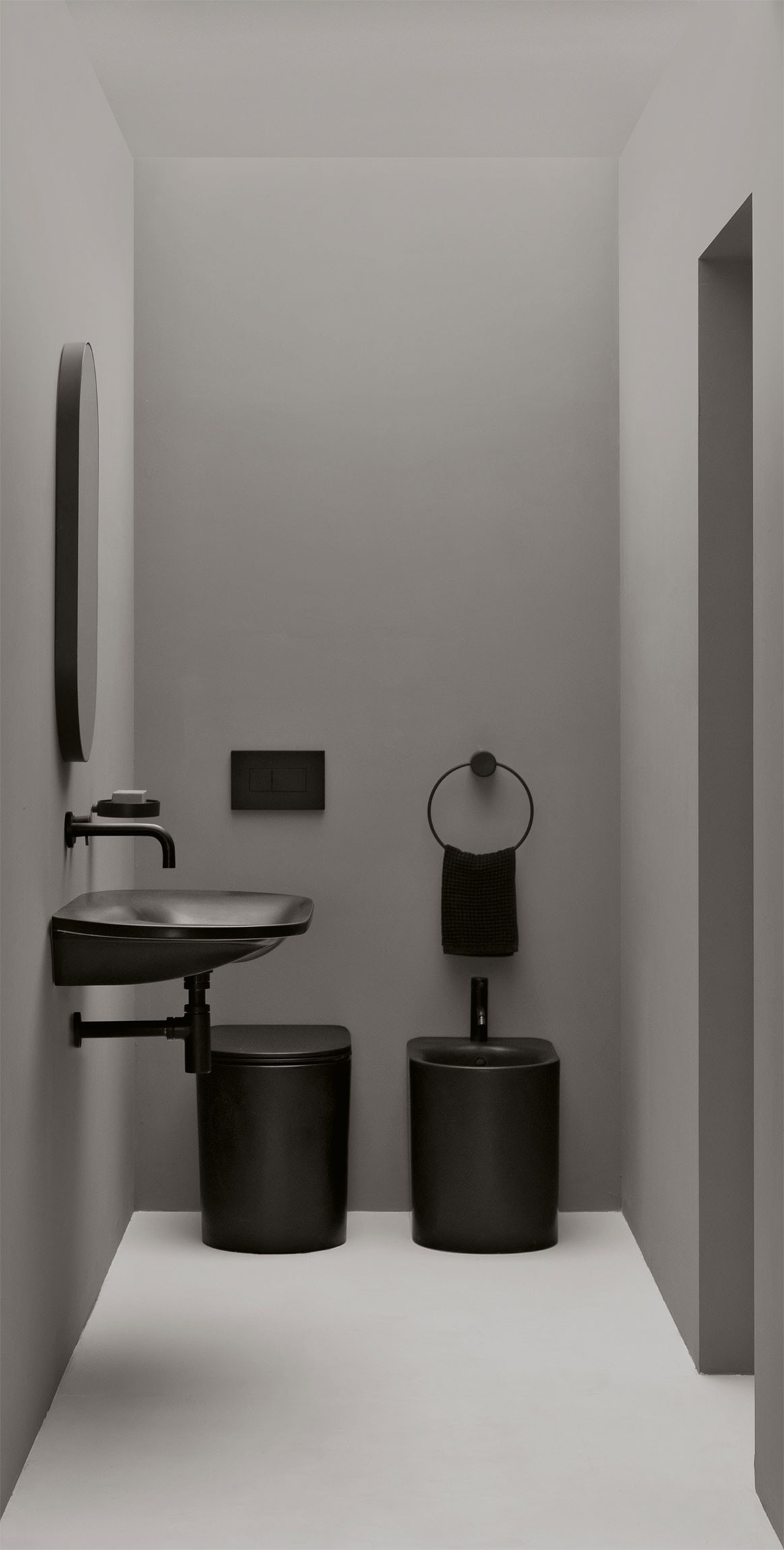 – Il design Delano gioca con la leggerezza delle forme ceramiche in contrasto con la solidità visiva del nero opaco, dando vita a un bagno contemporaneo e raffinato.