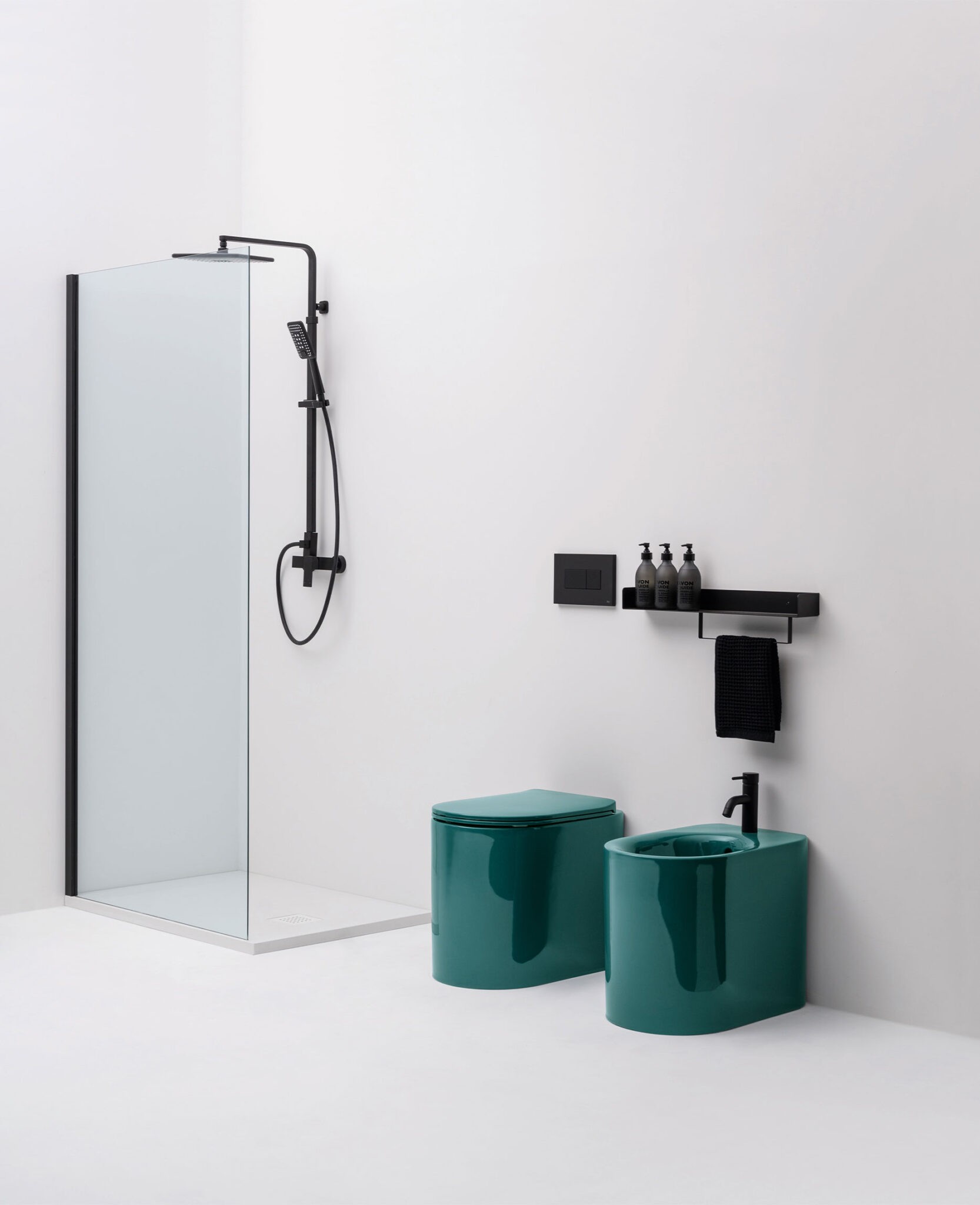 – Il colore Petrolio Lucido è una tonalità intensa, profonda e leggermente vibrante nel suo aspetto blu-verde scuro, con superficie lucida e brillante. Questa finitura crea un effetto visivo elegante e deciso, capace di trasformare i sanitari o i lavabi in elementi di forte carattere nel bagno.