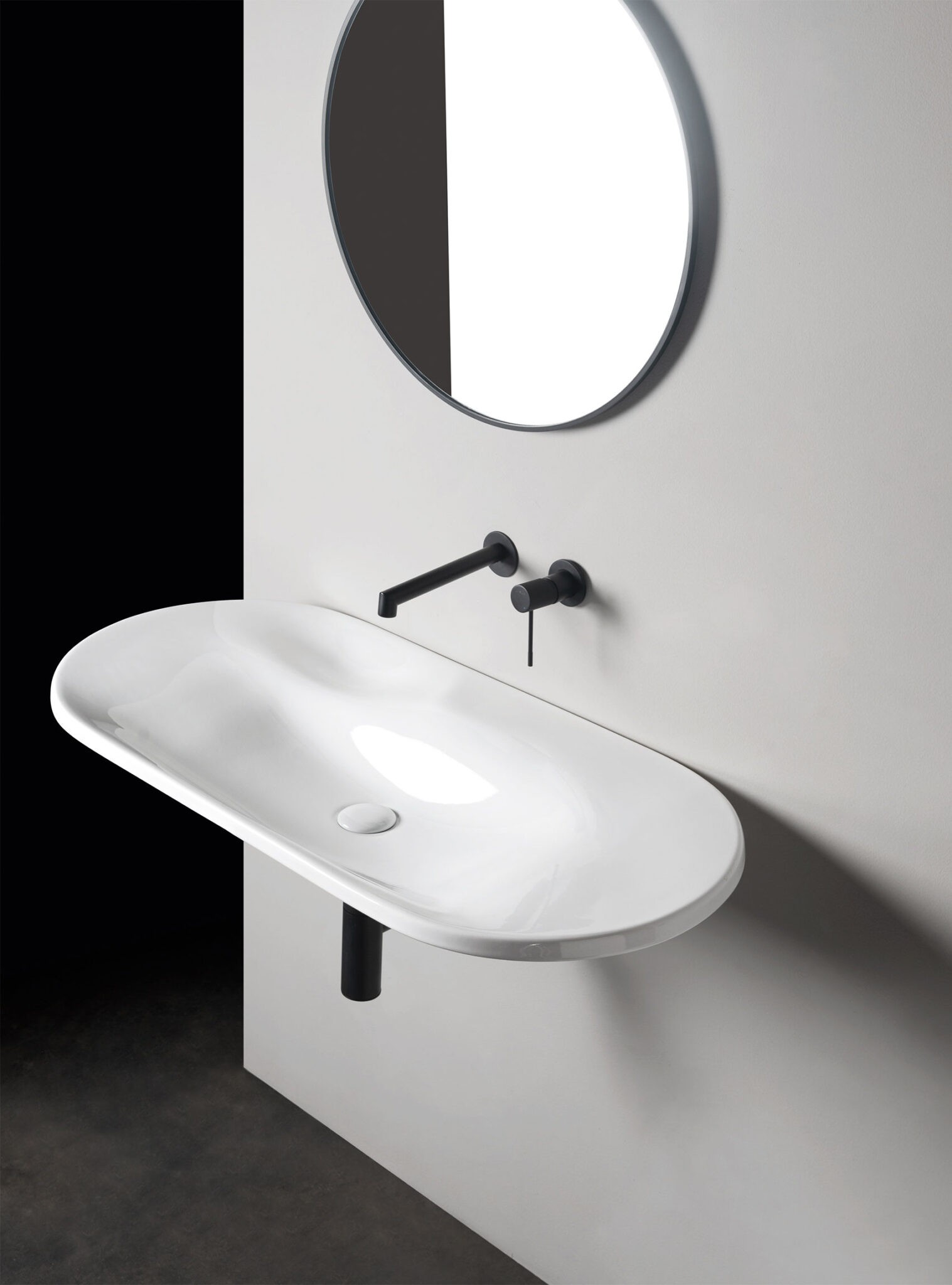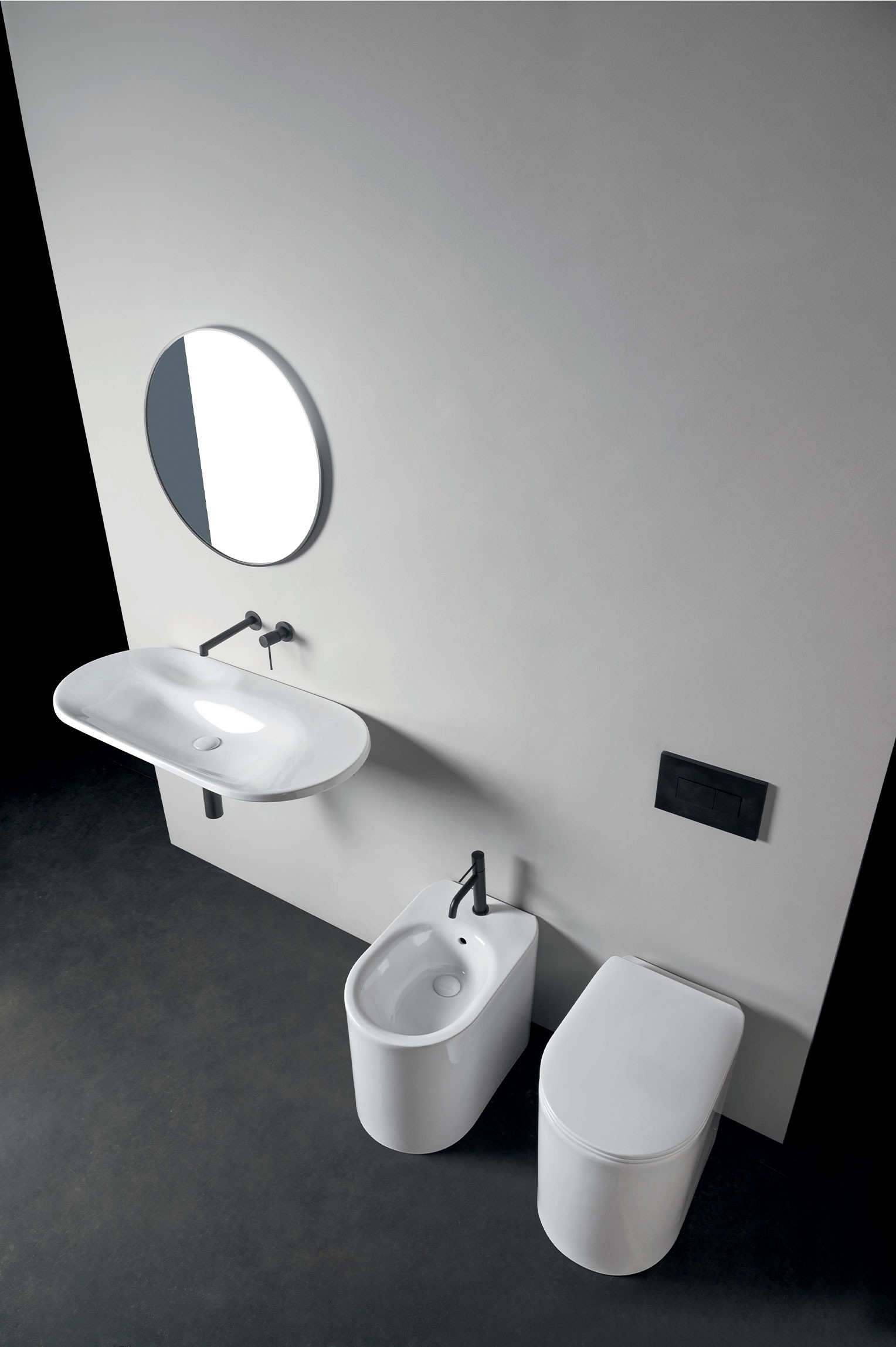 – La collezione comprende sanitari (wc e bidet), lavabi e altri complementi con linee essenziali e proporzioni equilibrate, disponibili sia a terra sia sospesi.