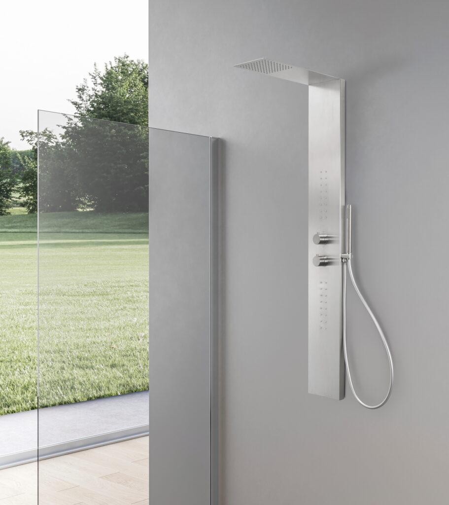 Installabile a parete, il pannello Caorle è progettato per offrire comfort e versatilità, trasformando la doccia quotidiana in un momento di relax personalizzato.
