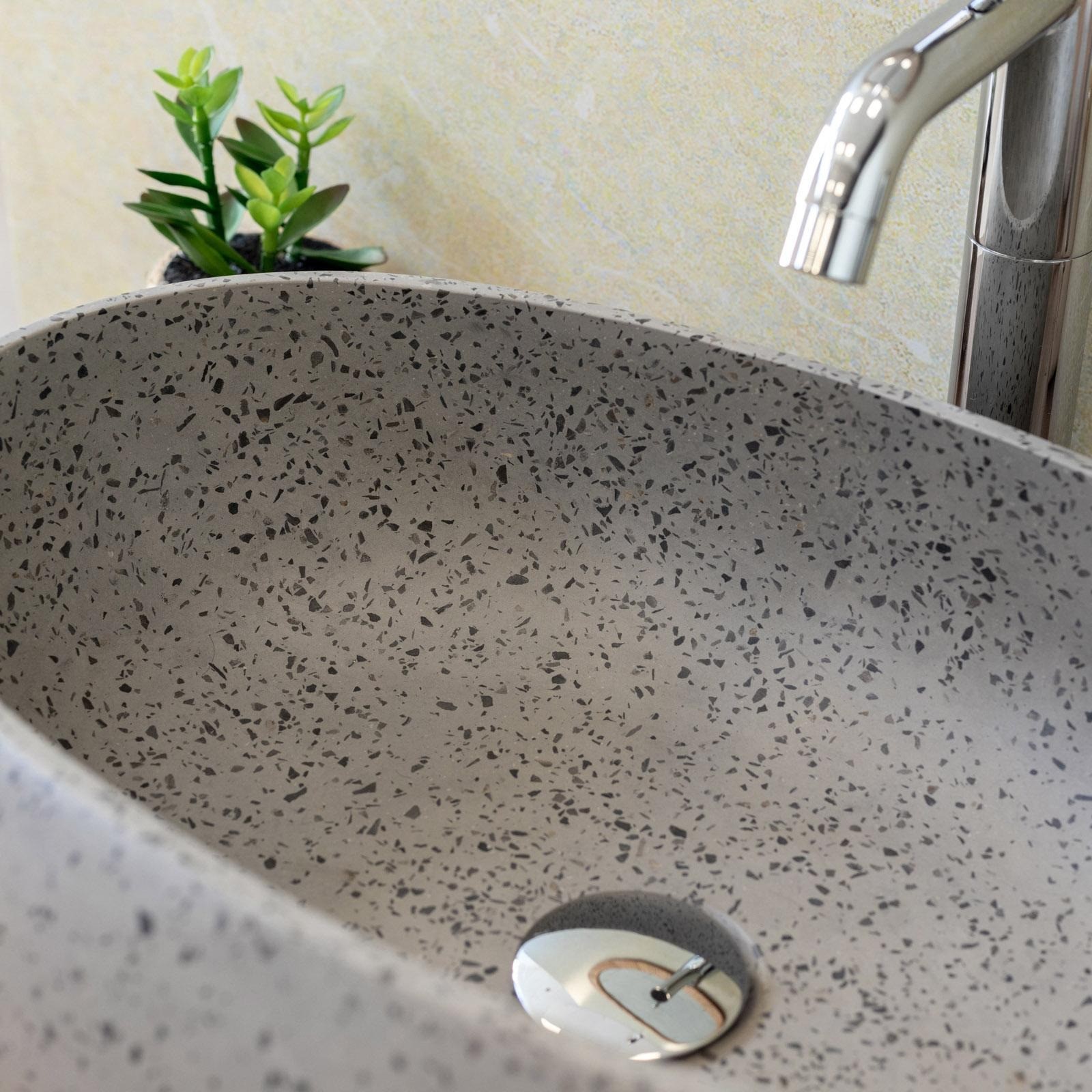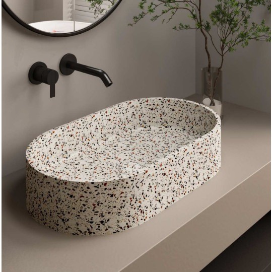 La collezione LINUS TERRAZZO di Karag è la sintesi perfetta tra design minimale e ricerca materica. Ispirata all’eleganza intramontabile del terrazzo, questa linea di lavabi da appoggio si distingue per la sua superficie decorativa unica, capace di donare personalità e stile a qualsiasi ambiente bagno.