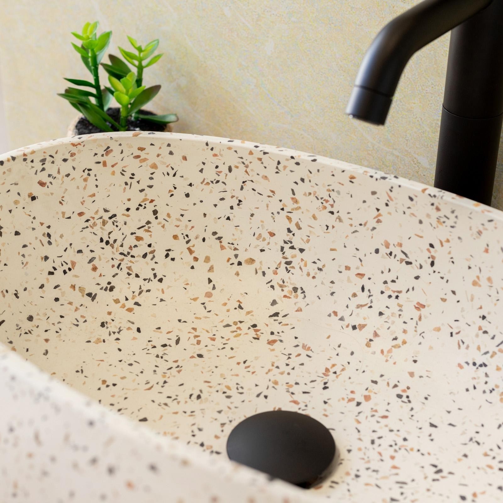 Design essenziale con finitura terrazzo, per un look contemporaneo e distintivo