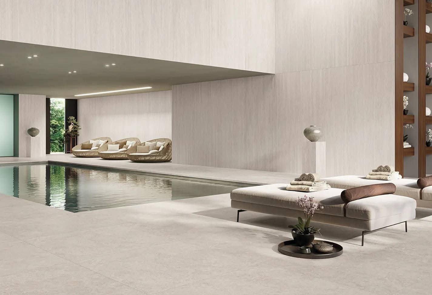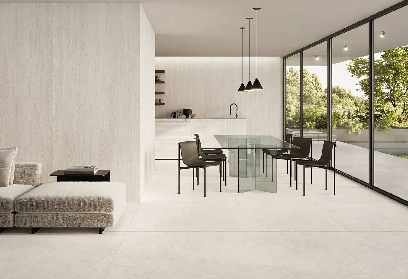 Ideale per spazi residenziali e commerciali, Grace White si distingue per il suo stile contemporaneo e la capacità di ampliare visivamente gli ambienti, donando un senso di armonia e continuità agli spazi.