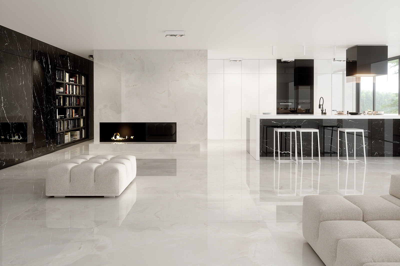 • Superficie lucida a effetto vetro, che esalta la profondità delle venature e valorizza ogni dettaglio architettonico.